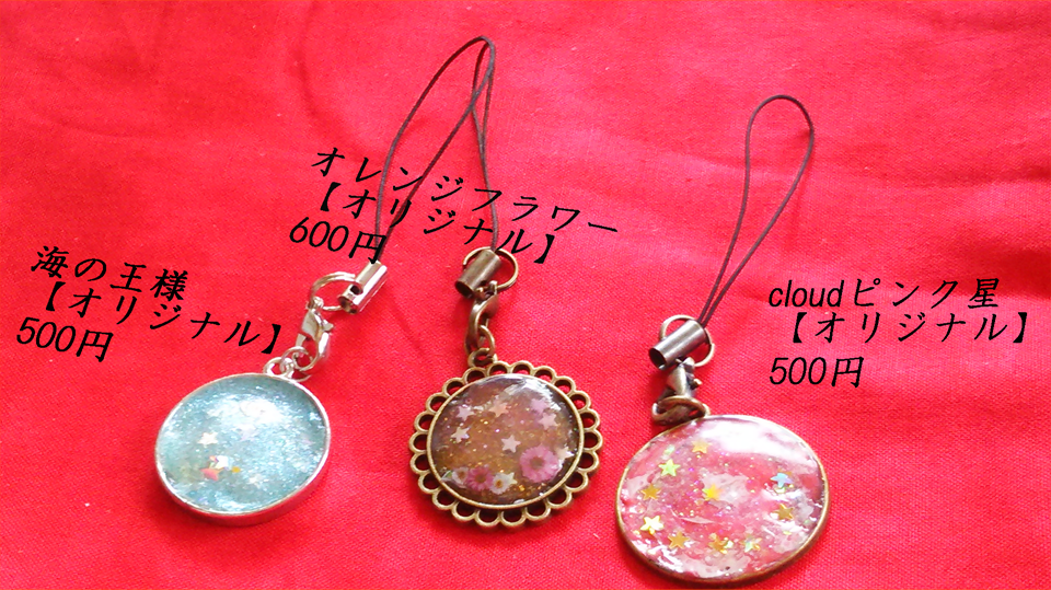 海の王様 500円、オレンジフラワー 600円、cloudピンク星 500円